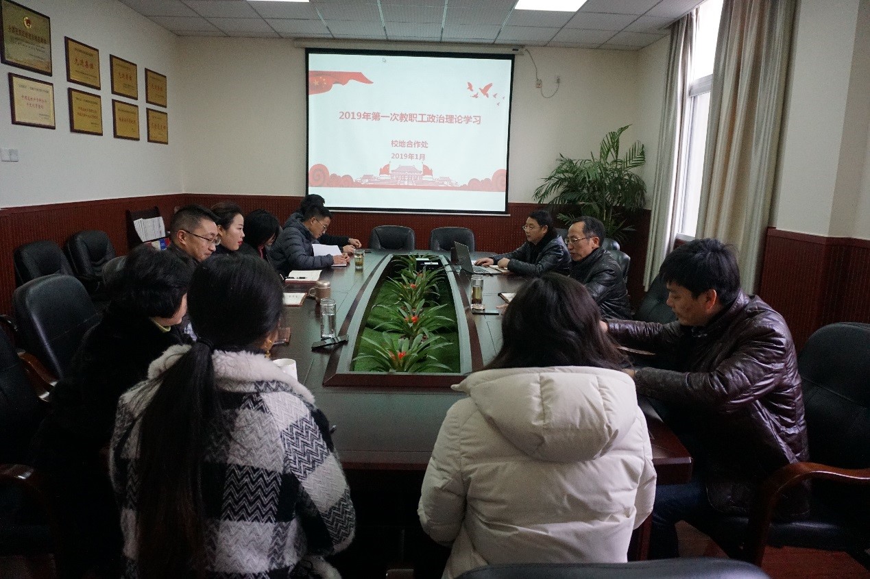 1月4日下午,校地合作处组织全处教职工开展2019年度第1次教职工政治理论学习。会议由杨明厚副处长主持。