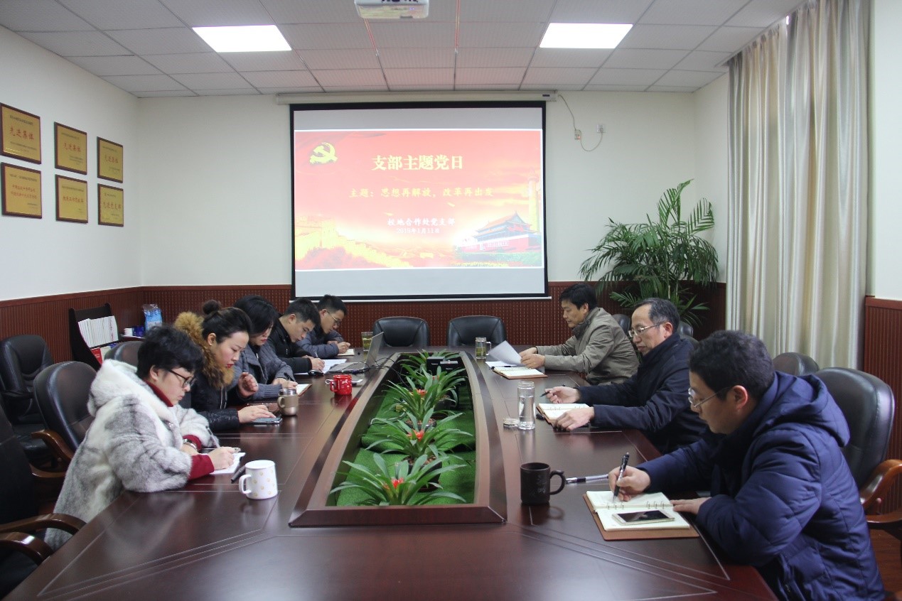 1月11日下午,校地合作处支部在南区行政楼三楼校地合作处会议室开展了以“思想再解放,改革再出发”的主题党日活动。会议由支部书记丁增富主持,支部党员同志参加了会议。