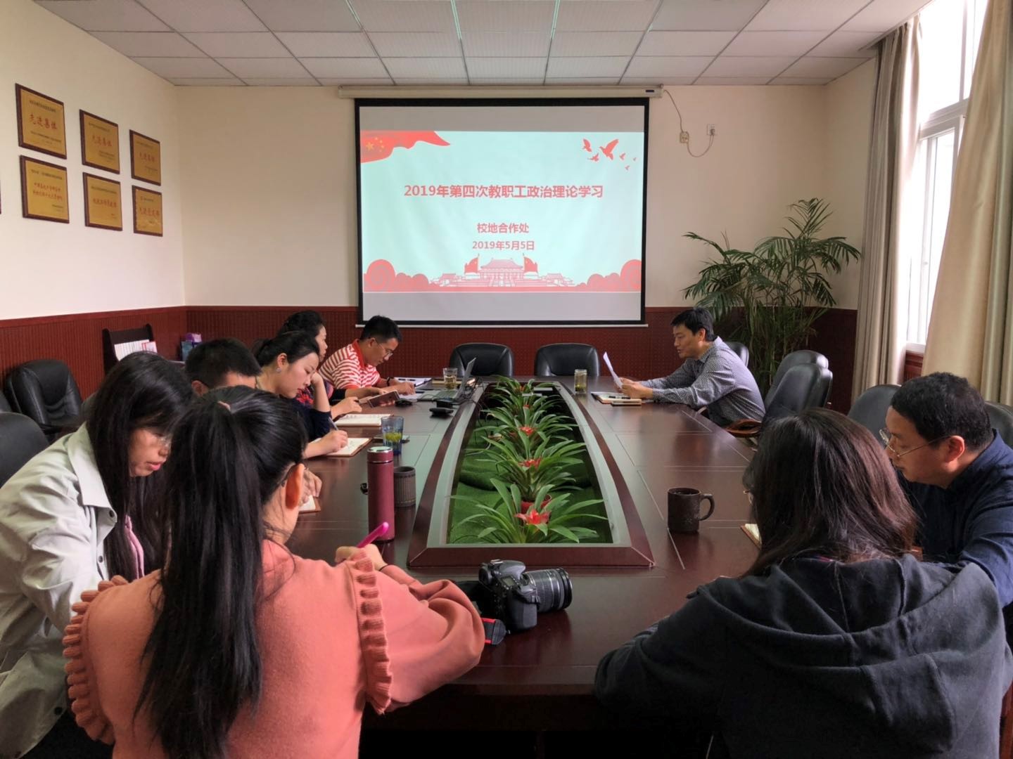 5月5日上午,校地合作处组织全处教职工开展2019年度第四次教职工政治理论学习。会议由副处长丁增富主持。