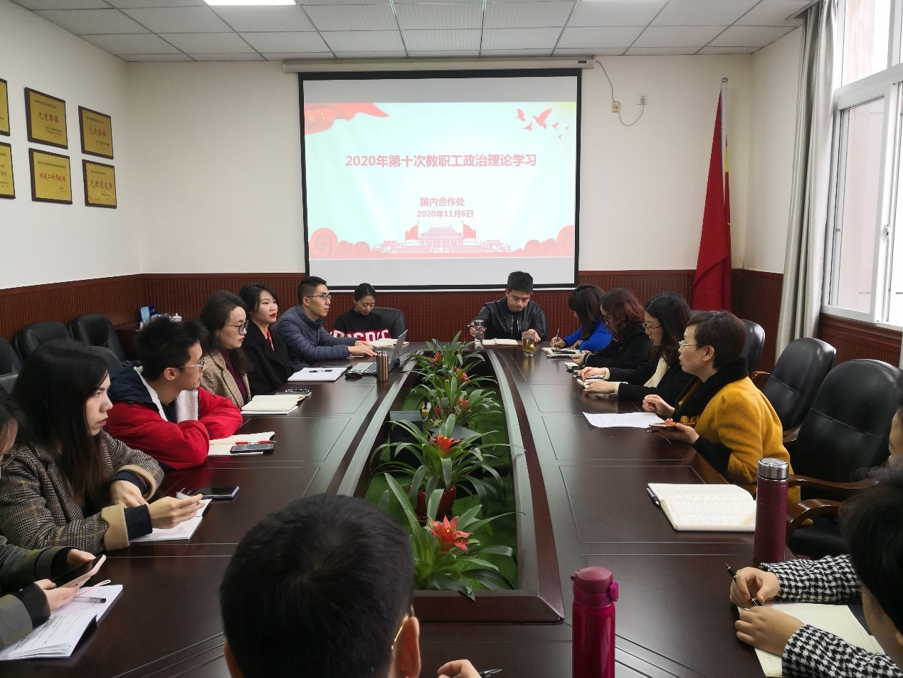 11月6日下午,国内合作处全体职工开展2020年第十次政治理论学习。学习会由副处长李惠同志主持。