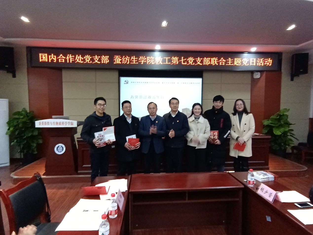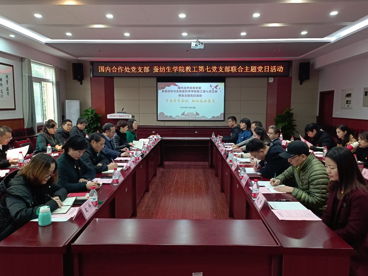 11月12日下午,国内合作处党支部与蚕桑纺织与生物质科学学院教职工第七党支部在第33教学楼306会议室举行联合主题党日活动,两个支部的全体党员参加会议,会议由学院党委书记副书记、纪委书记、教工第七党支部书记曾鸣鸣主持。