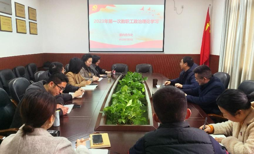 3月3日上午,国内合作处组织开展了2023年第一次教职工政治理论学习,杨明厚处长主持学习活动。