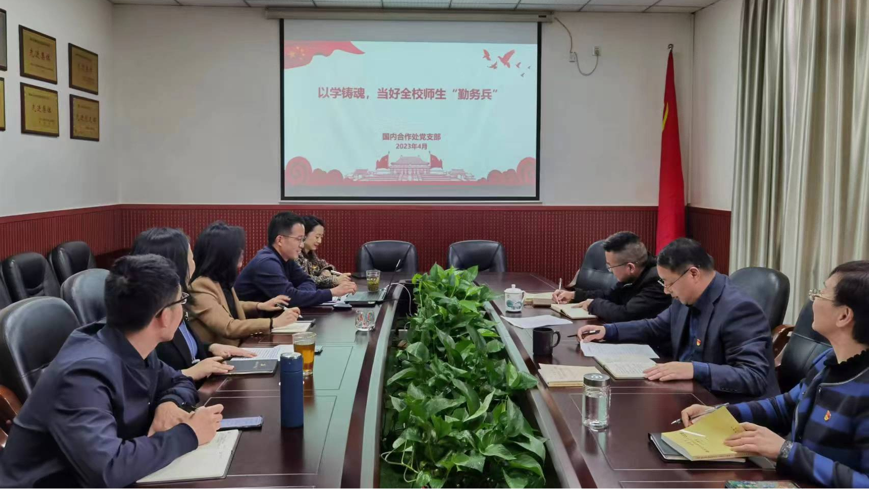 4月24日,国内合作处党支部开展“以学铸魂,当好全校师生‘勤务兵’”主题党日活动,党支部书记杨明厚同志主持活动。