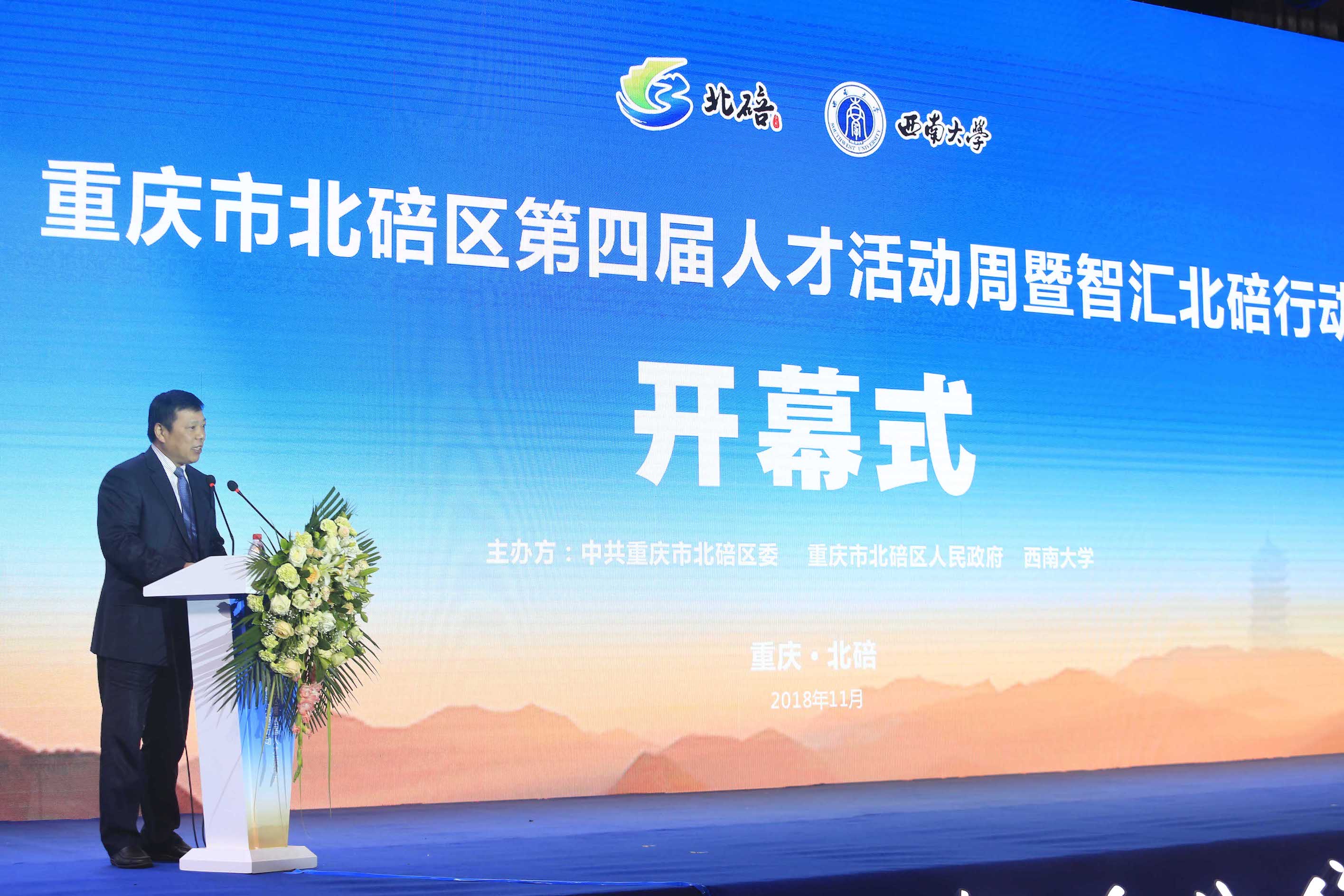 开幕式上,中共重庆市北碚区委副书记、区长何庆致辞表示,北碚区内人才总量达18.1万余人,聚集两院院士、各类省部级以上人才计划人选等高层次人才近500人。此次北碚区与西南大学共同举办本次人才活动周暨智汇北碚行动,就是为了进一步打造校地合作“升级版”,积极营造支持创业、崇尚创新、宽容失误的创业创新生态环境,让各类人才在北碚创业有机会、创新有条件、干事有舞台、发展有空间。
