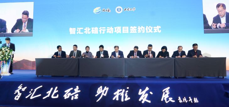 11月24日下午,“智汇北碚”行动项目签约暨“碚有引力”产业聚才计划政策兑现仪式在北碚区海宇温泉酒店进行。现场签约17项目,签约金额279.27亿,涉及高新技术及先进制造、文化旅游、商贸服务、金融服务等产业。学校与北碚区签约了校地合作智库共建、乡村振兴专项合作、校地党建工作联盟等项目,学校党委副书记潘洵,原副校长丁忠民及相关职能部门负责人出席仪式。