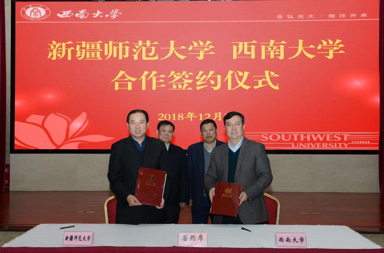 新疆师范大学高子伟副校长和西南大学王进军副校长签订《新疆师范大学·西南大学合作框架协议》。此外,双方马克思主义学院、教育学部等相应学院(部)还签订了专项合作协议。