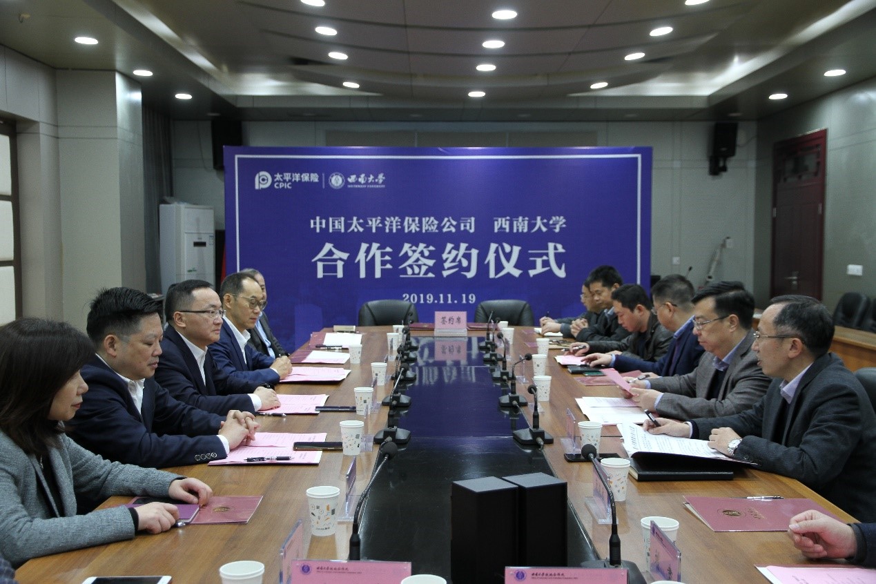 11月19日下午,学校与中国太平洋保险(集团)有限公司举行合作签约仪式。中国太平洋保险集团副总裁赵永刚、学校副校长王进军出席签约仪式。学校相关职能部门负责人,太保集团有关负责人参加签约仪式。仪式由校地合作处处长程龙主持。