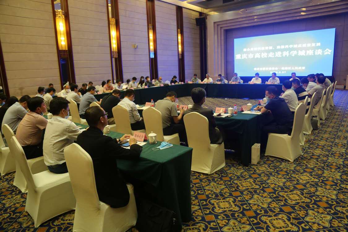 在交流座谈会上,重庆市委教育工委书记、市教委主任黄政,北碚区委书记周旭围绕推动科学城建设发表讲话。张卫国介绍了学校与北碚区校地合作的有关情况。