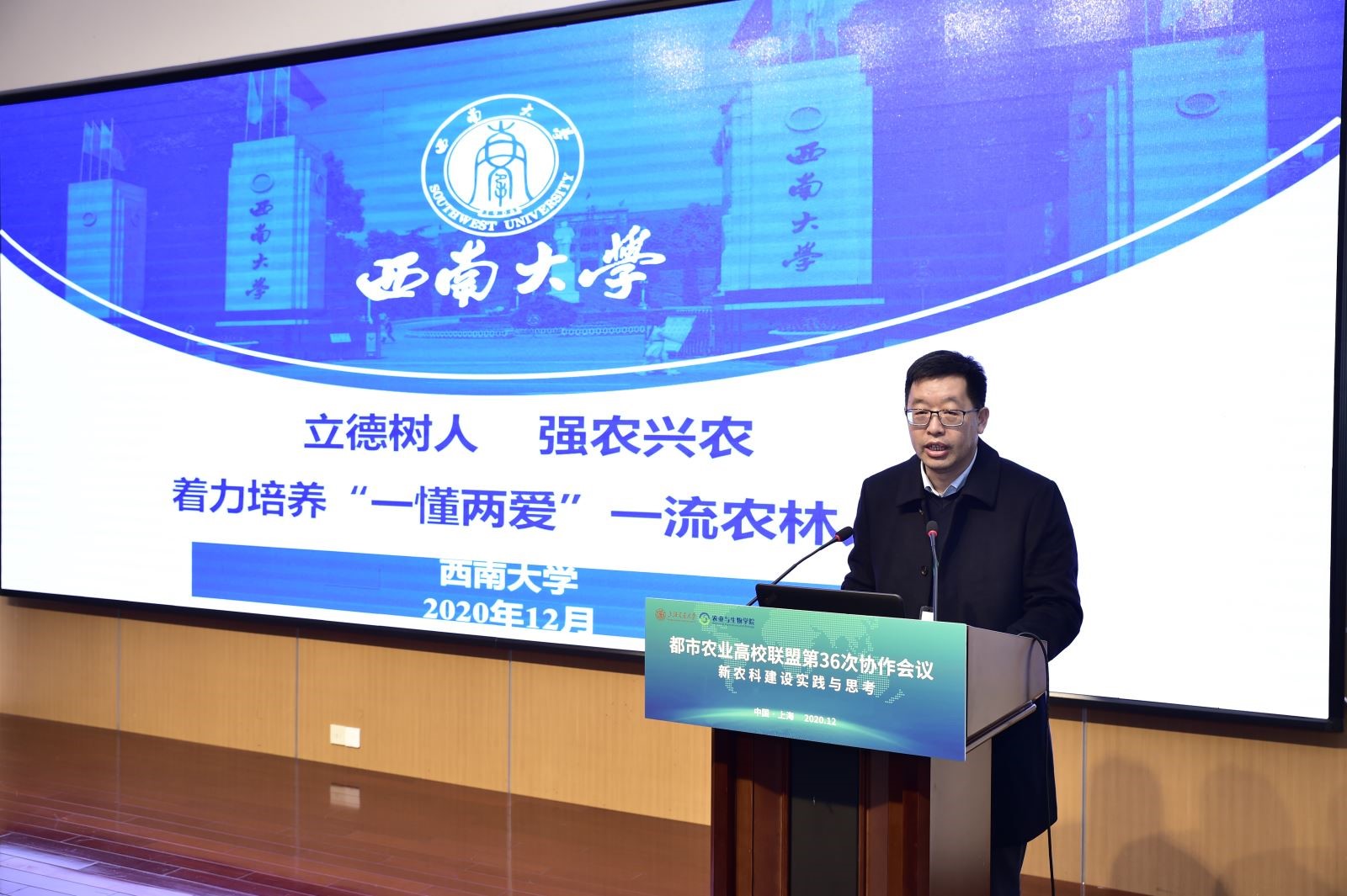 本次会议贯彻落实党的十九届五中全会精神,以“新农科建设实践与思考”为主题,共商助力乡村振兴战略和新农科建设的新举措新路径。会上,各联盟高校围绕会议主题对新农科建设的发展进行了深入的交流,并召开高校促进乡村产业发展圆桌会。会上,赵国华副校长以“立德树人、强农兴农,着力培养‘一懂两爱’一流农林人才”为题作了主题报告,从“把握新农科建设的三重价值、推进新农科建设的四维坚持、开展新农科建设的八项行动”等方面介绍了西南大学新农科建设的做法和经验。