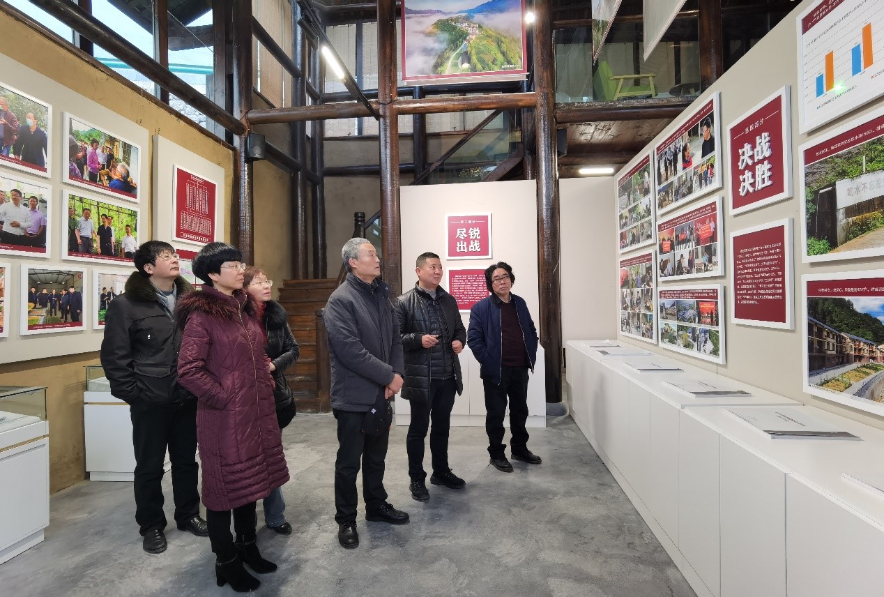 1月8日上午,李华一行来到红池坝镇茶山村,考察了“小组团、微田园、生态化、有特色”农旅融合模式,参观了由破旧农房改造成的渝富茶山书院暨红池坝镇脱贫攻坚展览馆,详细了解红池坝镇尽锐出战、攻克深贫的历程。