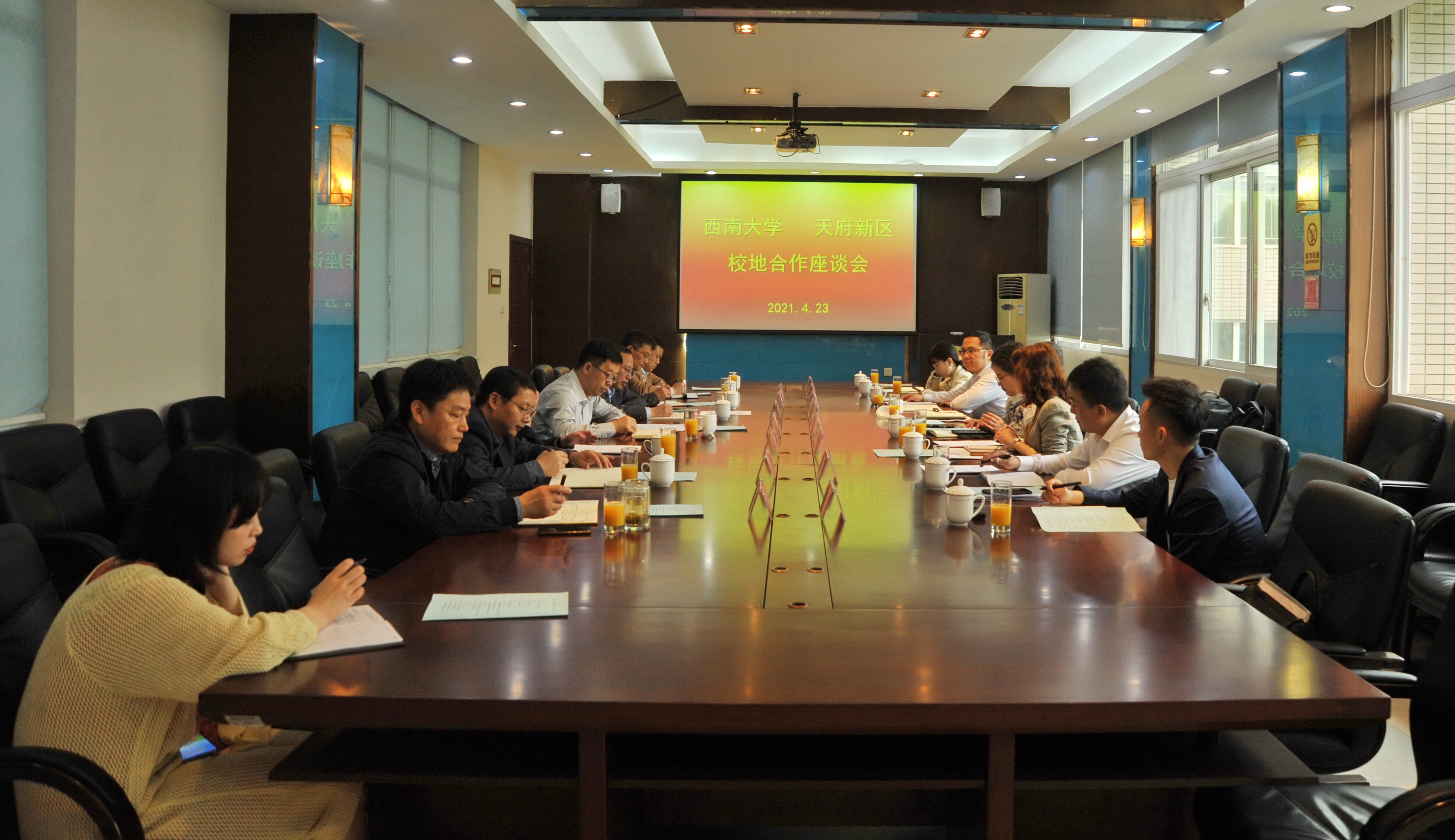 2021年4月23日,四川天府新区党工委副书记、政法委书记刘荣华率队来校洽谈校地合作事宜。学校副校长赵国华出席座谈会,国内合作处、柑桔研究所负责人参加座谈。