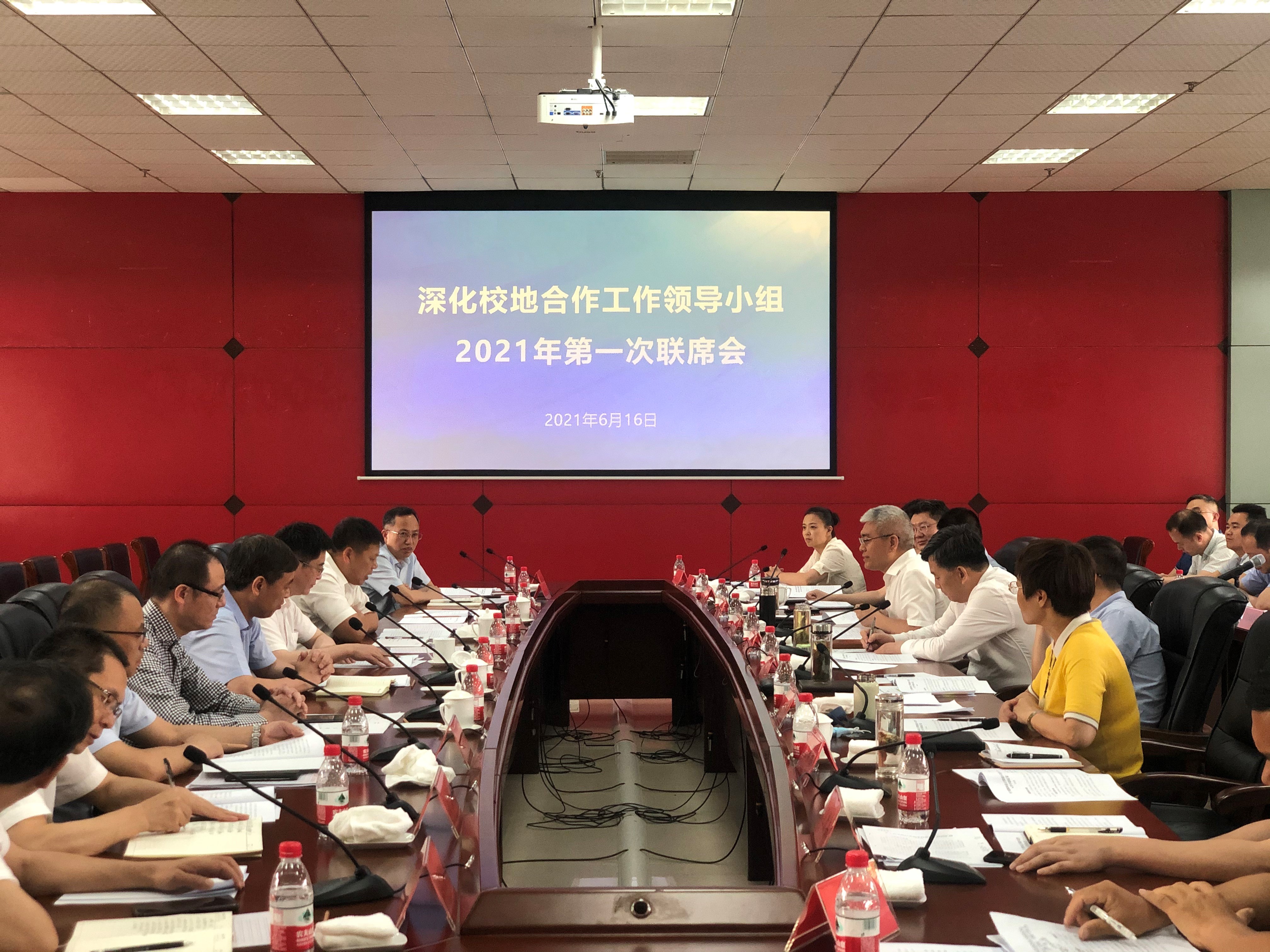 2021年6月16日,学校与北碚区在北碚区行政中心三楼会议室召开深化校地合作领导小组2021年第一次联席会。北碚区委书记周旭,区委副书记、区长何庆,区委常委、区政府常务副区长董伦,副区长刘永,副区长刘小辉,西南大学党委书记李旭锋、校长张卫国、党委副书记潘洵、副校长王进军以及相关单位负责人参加会议。区常务副区长董伦主持会议。