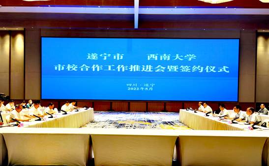 会议听取了市校合作情况汇报,赵国华和张峰代表市校双方签署乡村振兴合作协议,并为遂宁安居区育才中学优质生源基地授牌。
