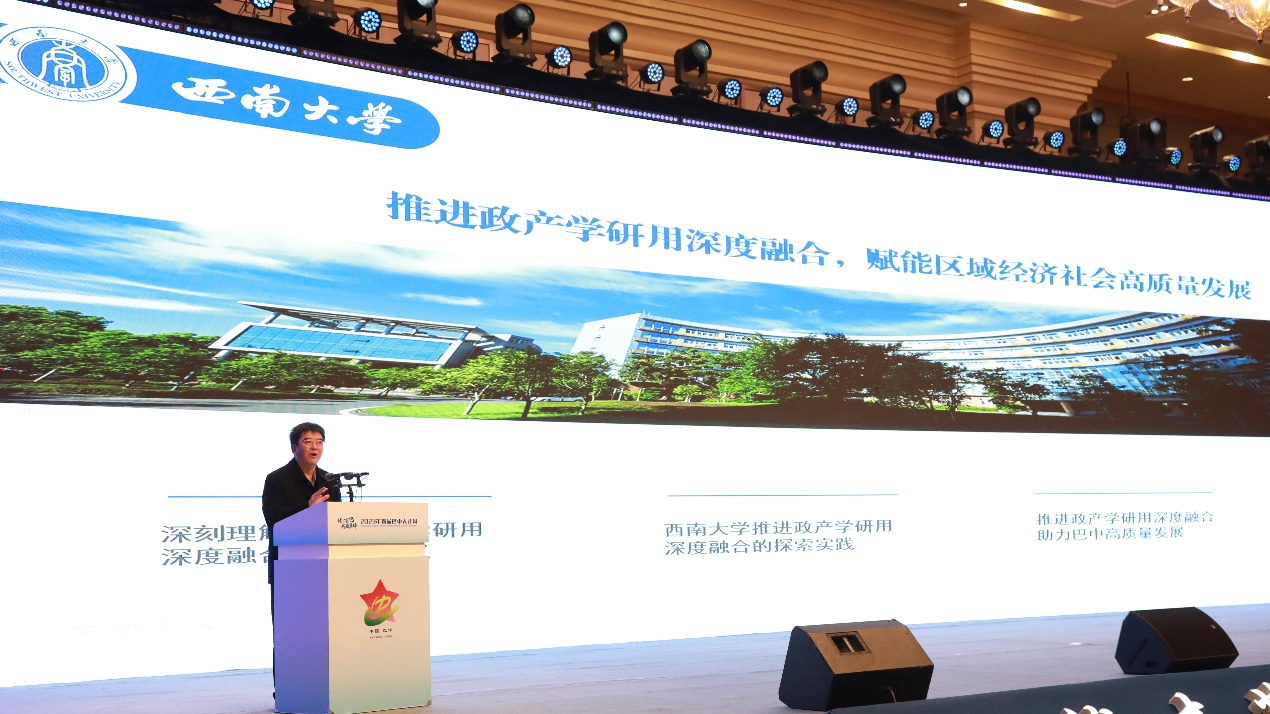 李旭锋在大会上作题为“推进政产学研用深度融合,赋能区域经济社会高质量发展”的主旨演讲,从深刻理解推进政产学研用深度融合的重要意义、西南大学推进政产学研用深度融合的探索实践、推进政产学研用深度融合助力巴中高质量发展等三个方面进行了深入阐述。他指出,政产学研用深度融合是适应知识生产和科技创新模式变革的现实要求,是促进区域经济社会高质量发展的有效途径,是推动高等教育强国建设的必然要求。他希望,学校与巴中在前期良好合作的基础上,在推进成渝地区双城经济圈建设的背景下,不断深化人才合作,加强乡村振兴合作,大力开展教育合作,积极推进文化合作,共同助力巴中高质量发展。