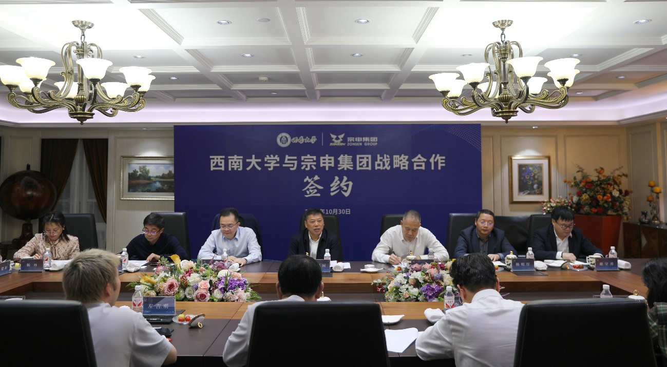 10月30日下午,学校与宗申产业集团有限公司产学研合作签约仪式暨交流座谈会在宗申集团举行。学校党委书记张卫国,副校长葛信勇;宗申集团董事局主席左宗申,董事局主席助理左吉明,董事局副主席、常务副总裁李耀,集团党委书记高敏,集团副总裁陆箐出席会议。
