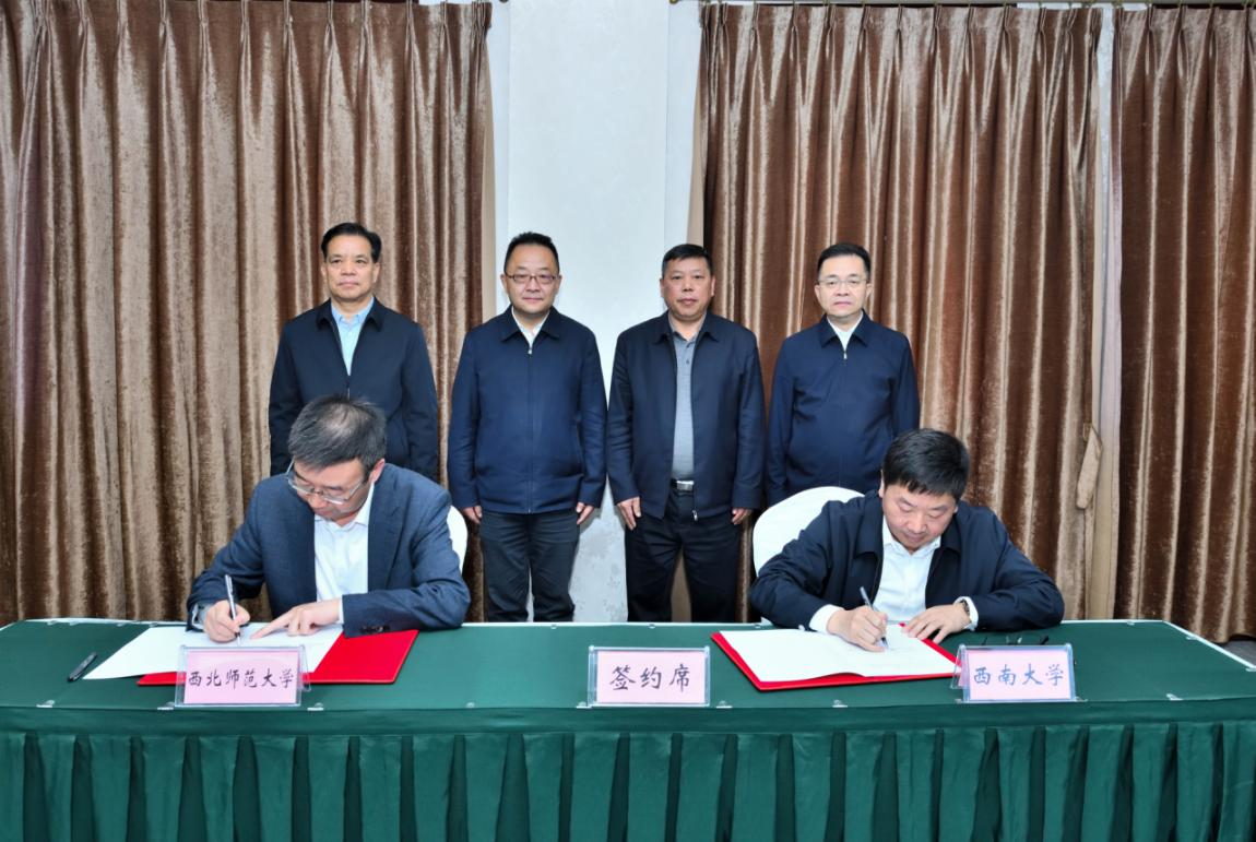 4月30日上午,学校与西北师范大学合作协议签约仪式暨合作交流座谈会在行署楼A栋第五会议室举行。西北师范大学党委书记贾宁海、副校长阎岩,学校党委书记张卫国、副校长邹芙都出席会议。阎岩、邹芙都代表双方签署合作框架协议。