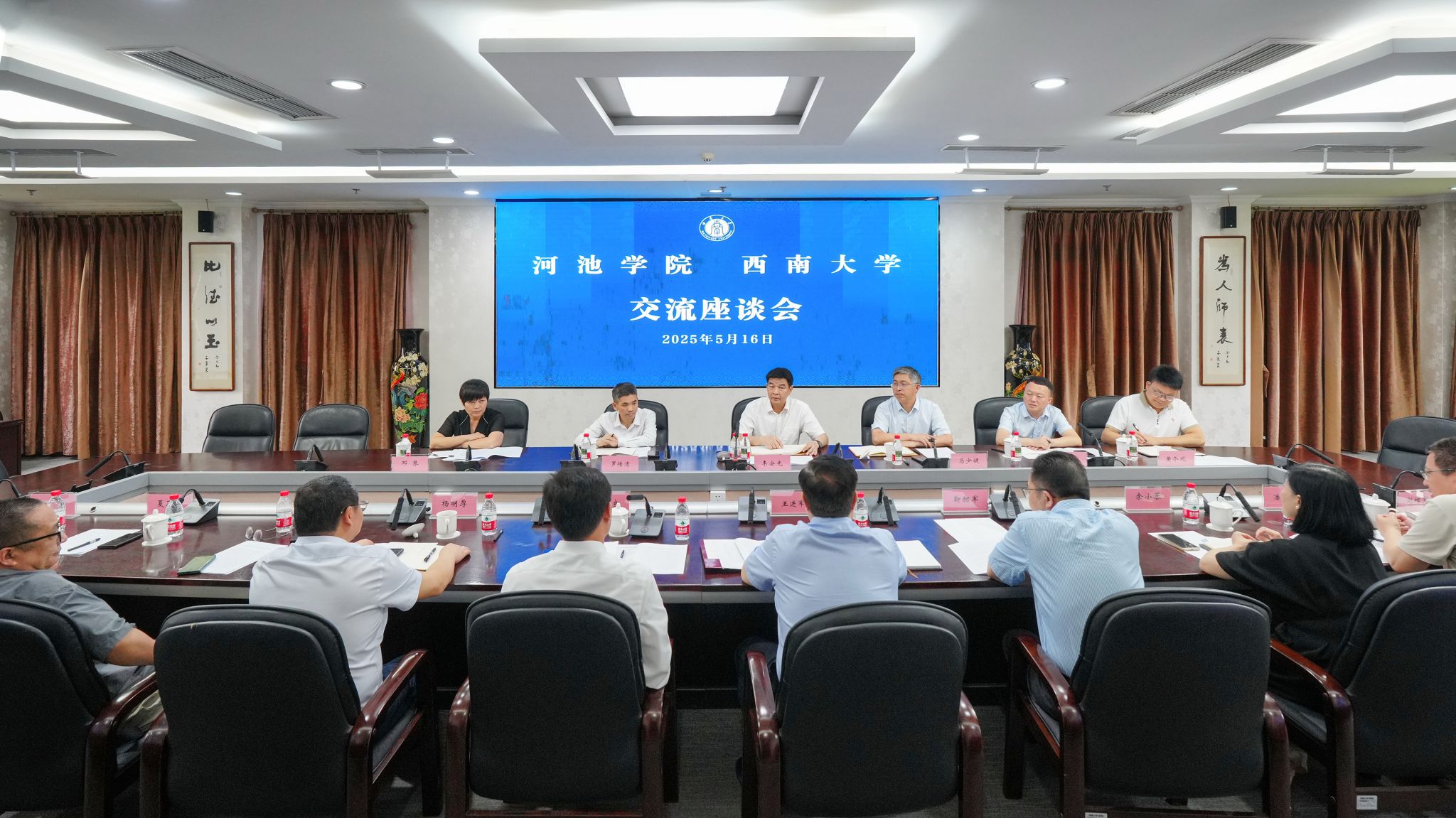 5月16日,河池学院党委书记韦安光、校长马少健一行来校考察交流。学校校长王进军,党委常委、副校长白显良出席交流座谈会,会议由白显良主持。